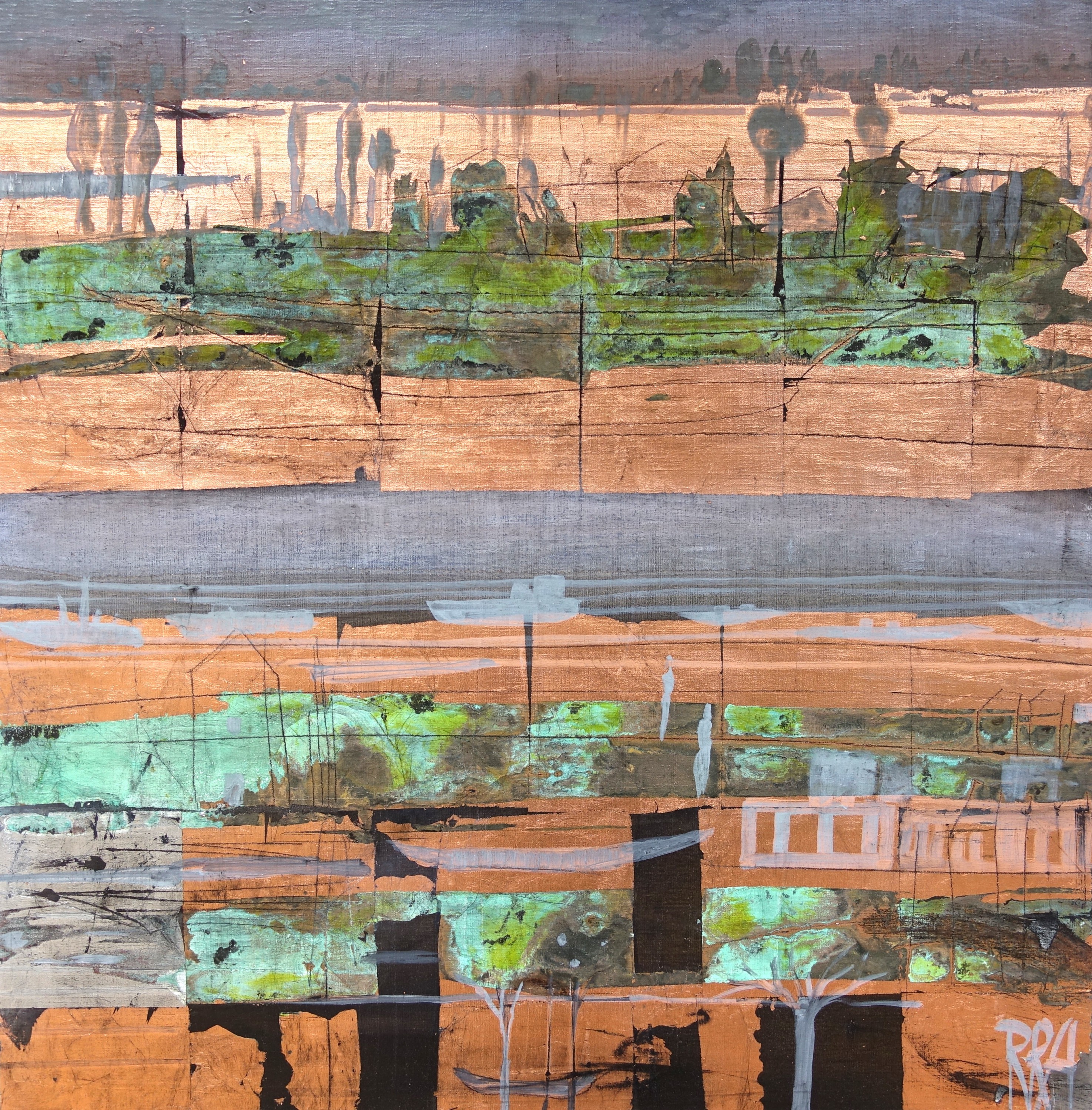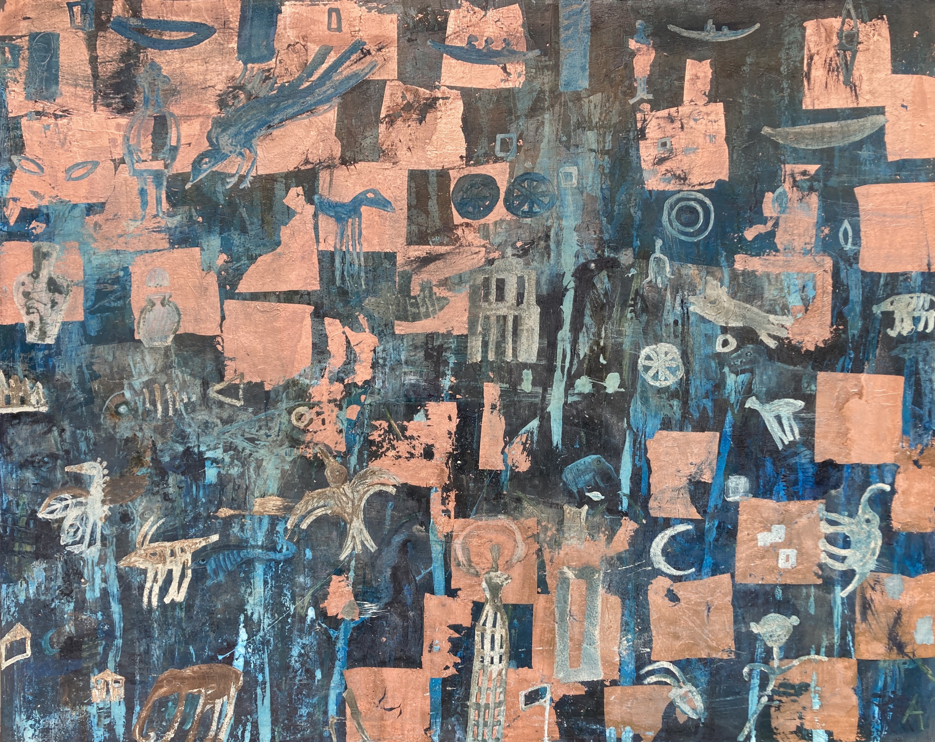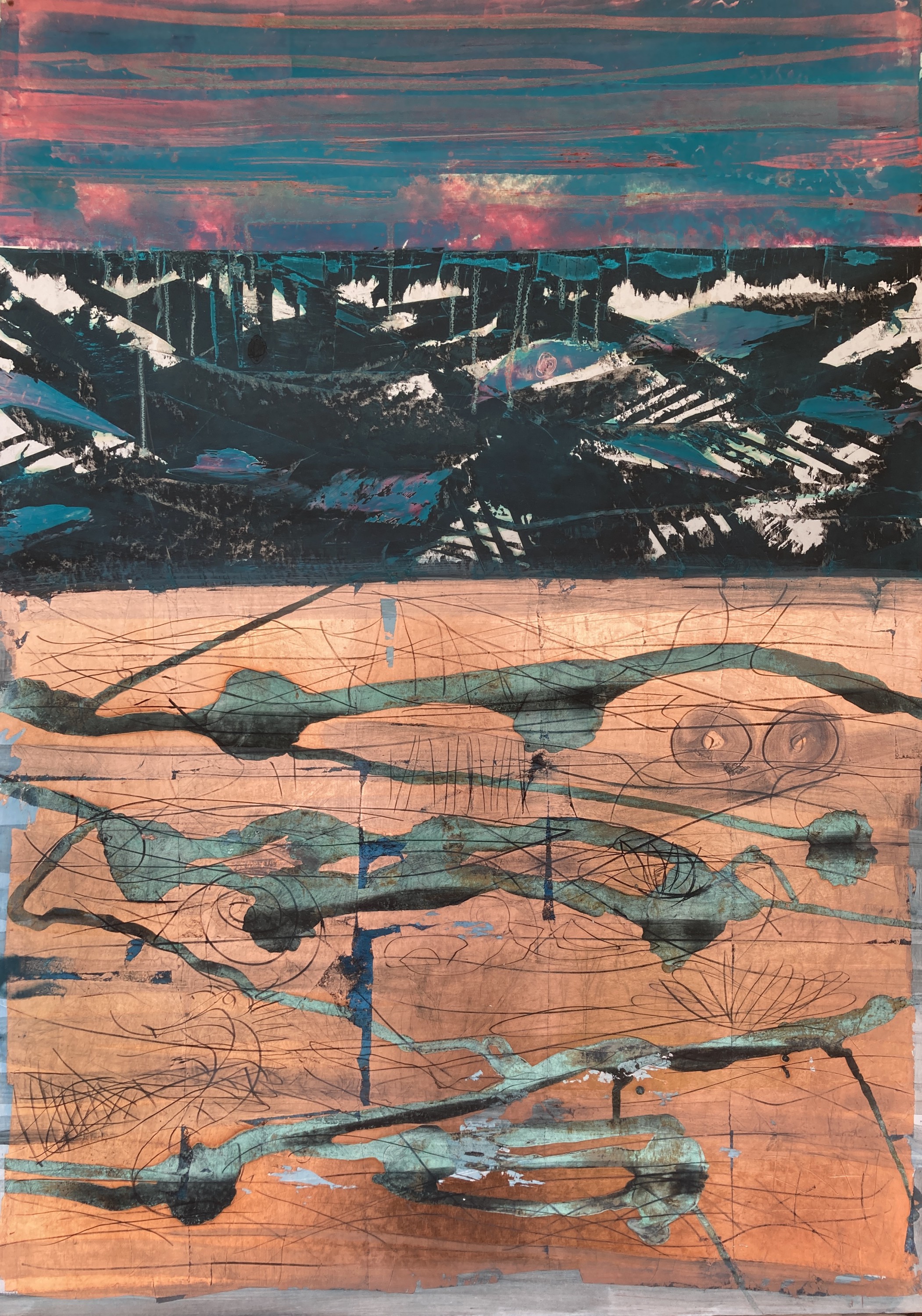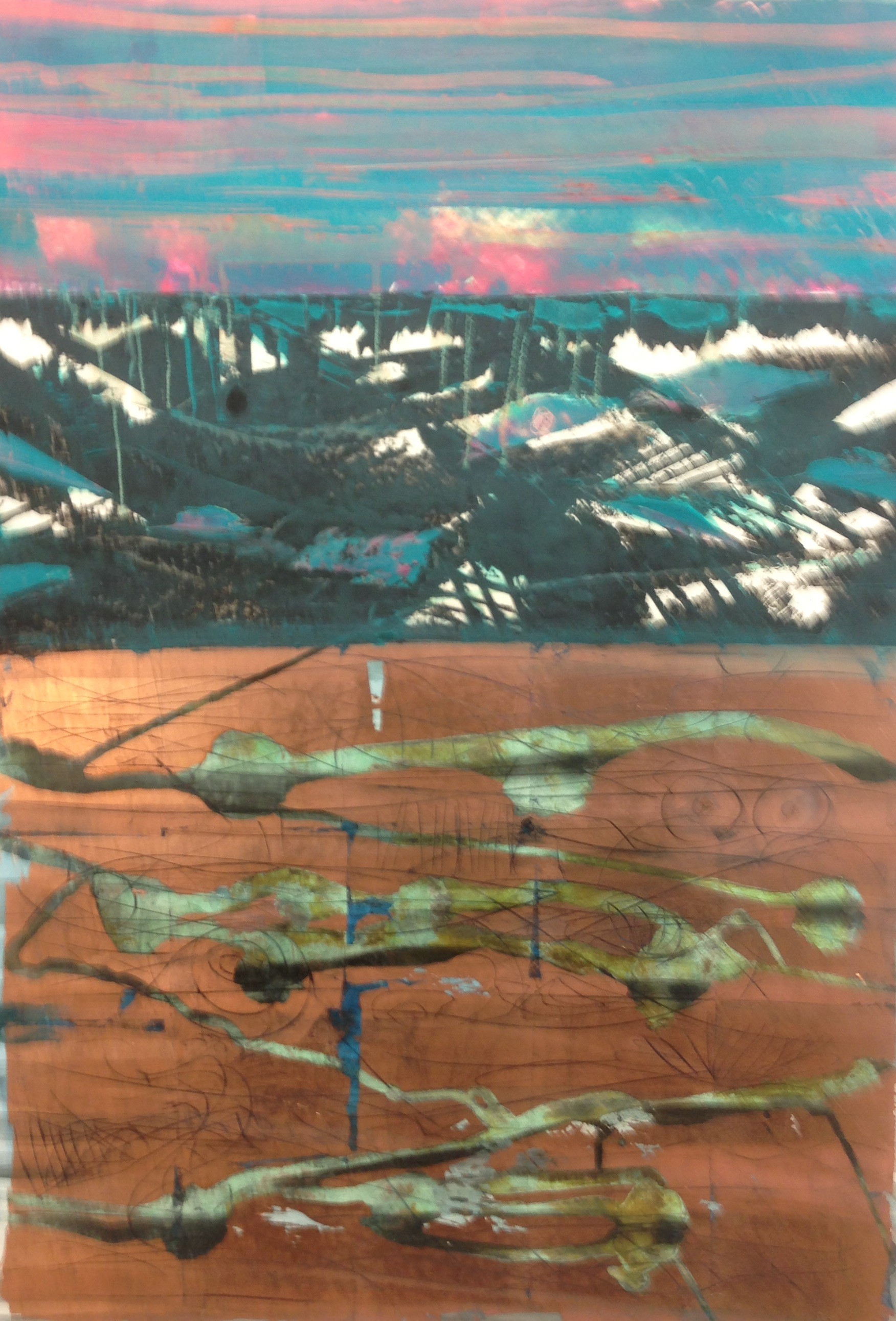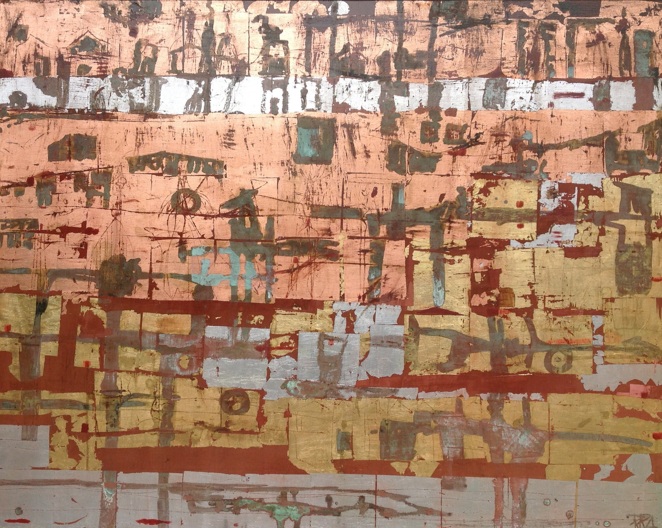 120x150 cm, Kupferoxyd/Acryl-MT auf Leinwand