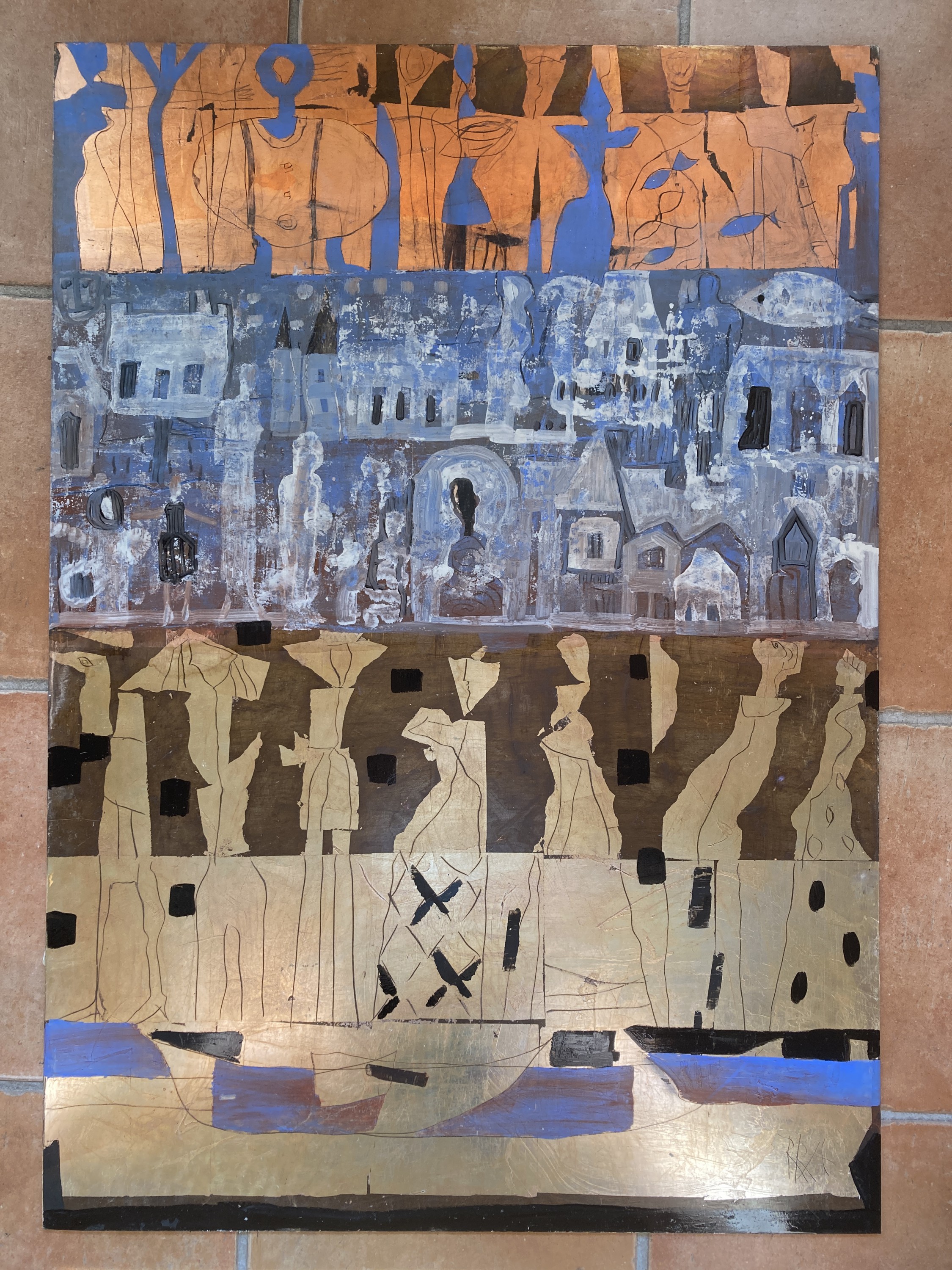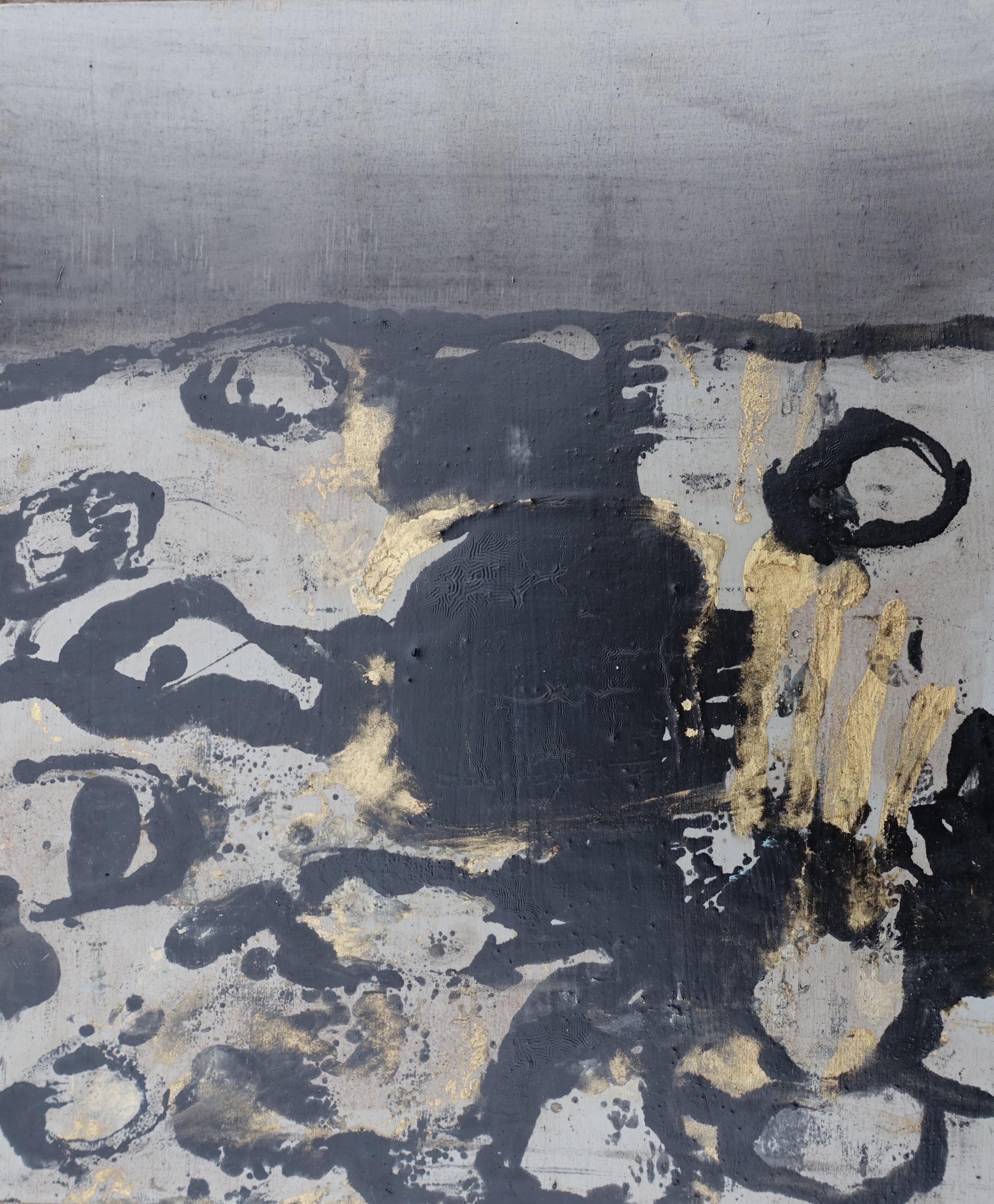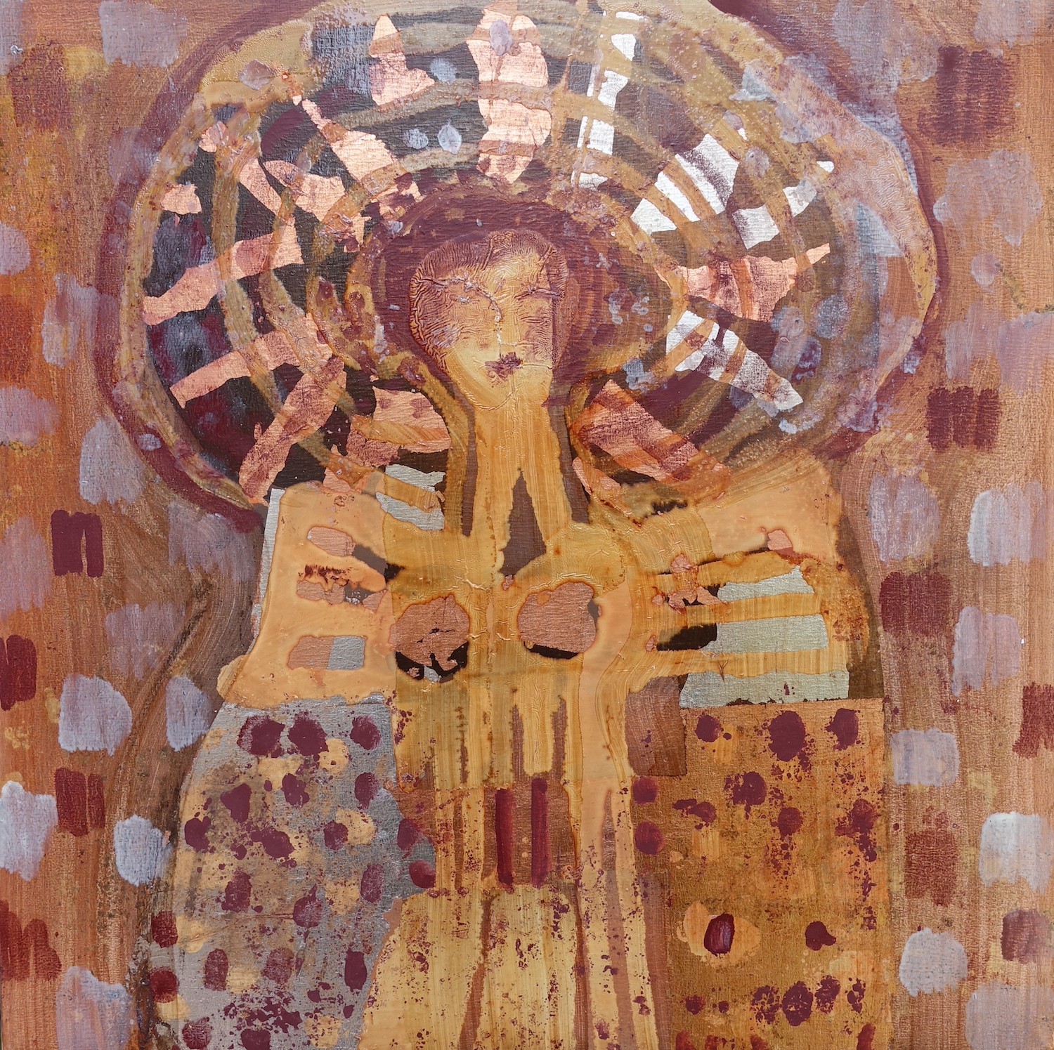 70x100 cm, Öl/Lack/Schlagmetall-MT auf Holz