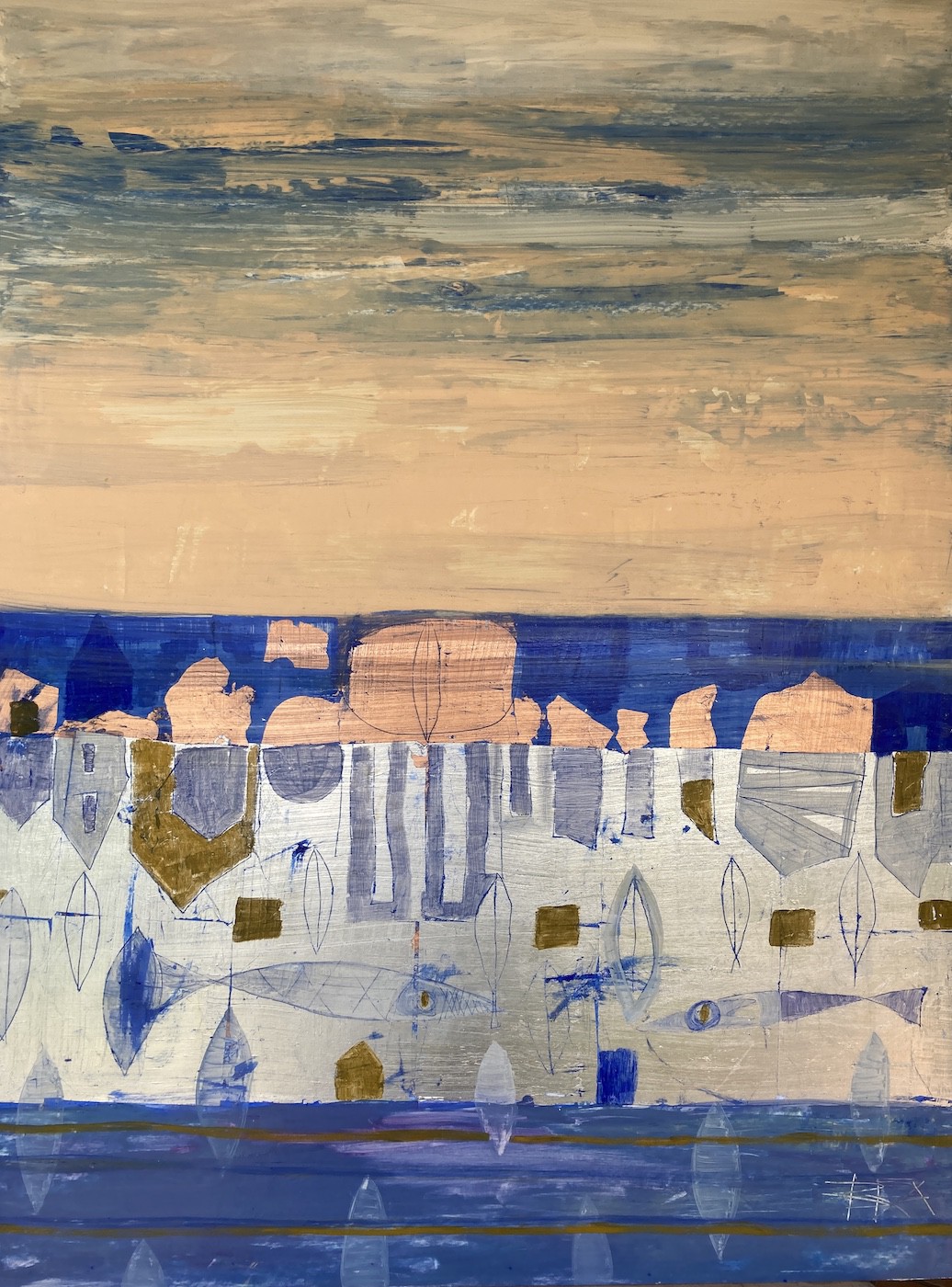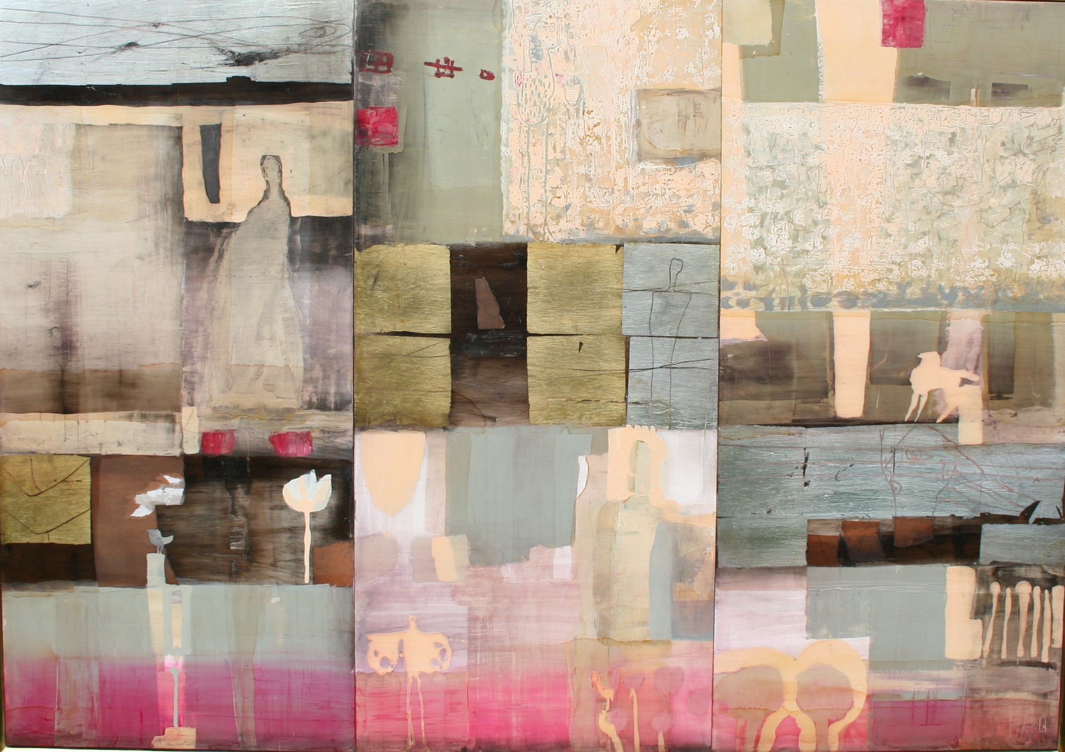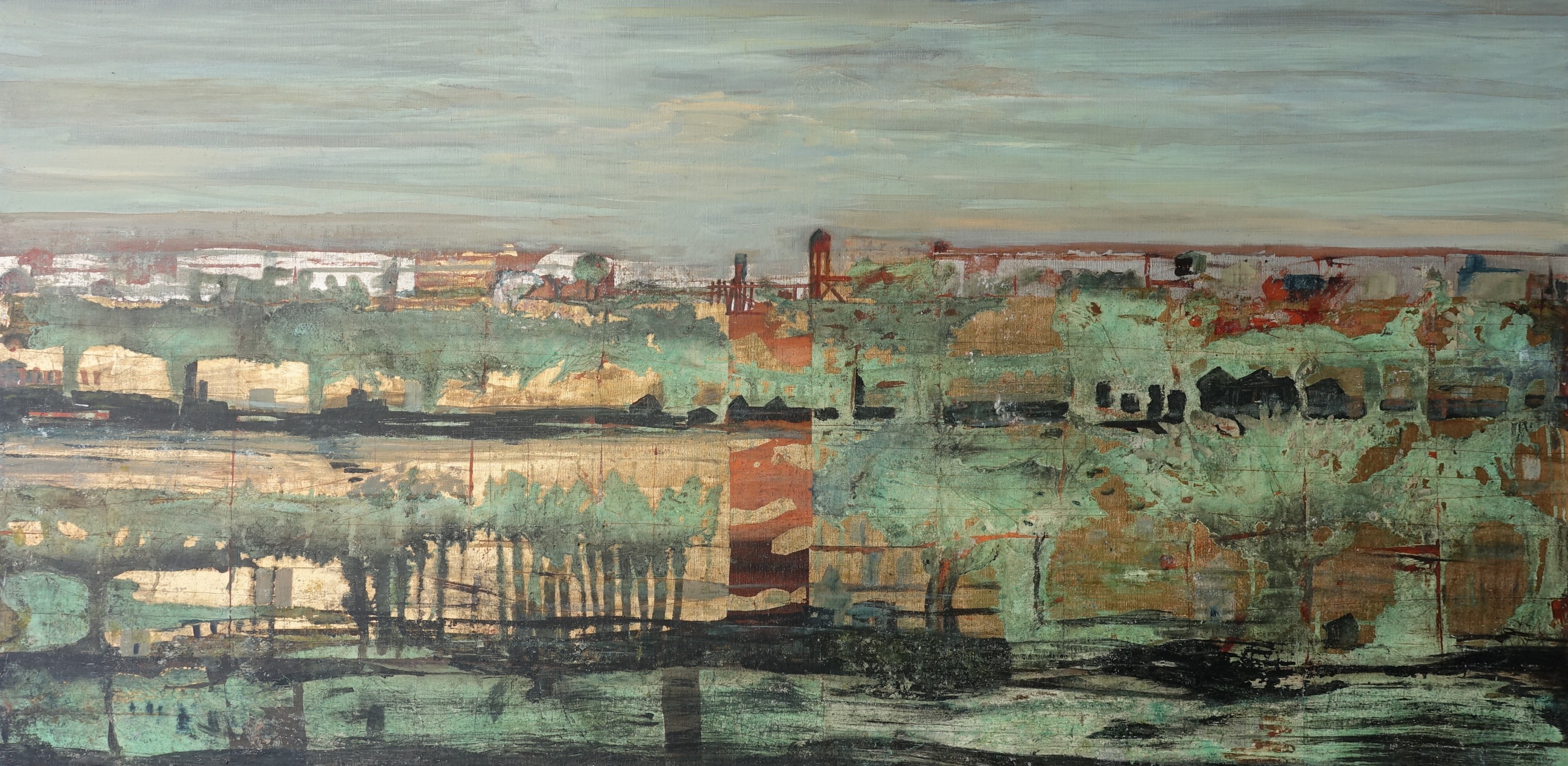 70x100 cm, Öl/Lack/Schlagmetall-MT auf Holz