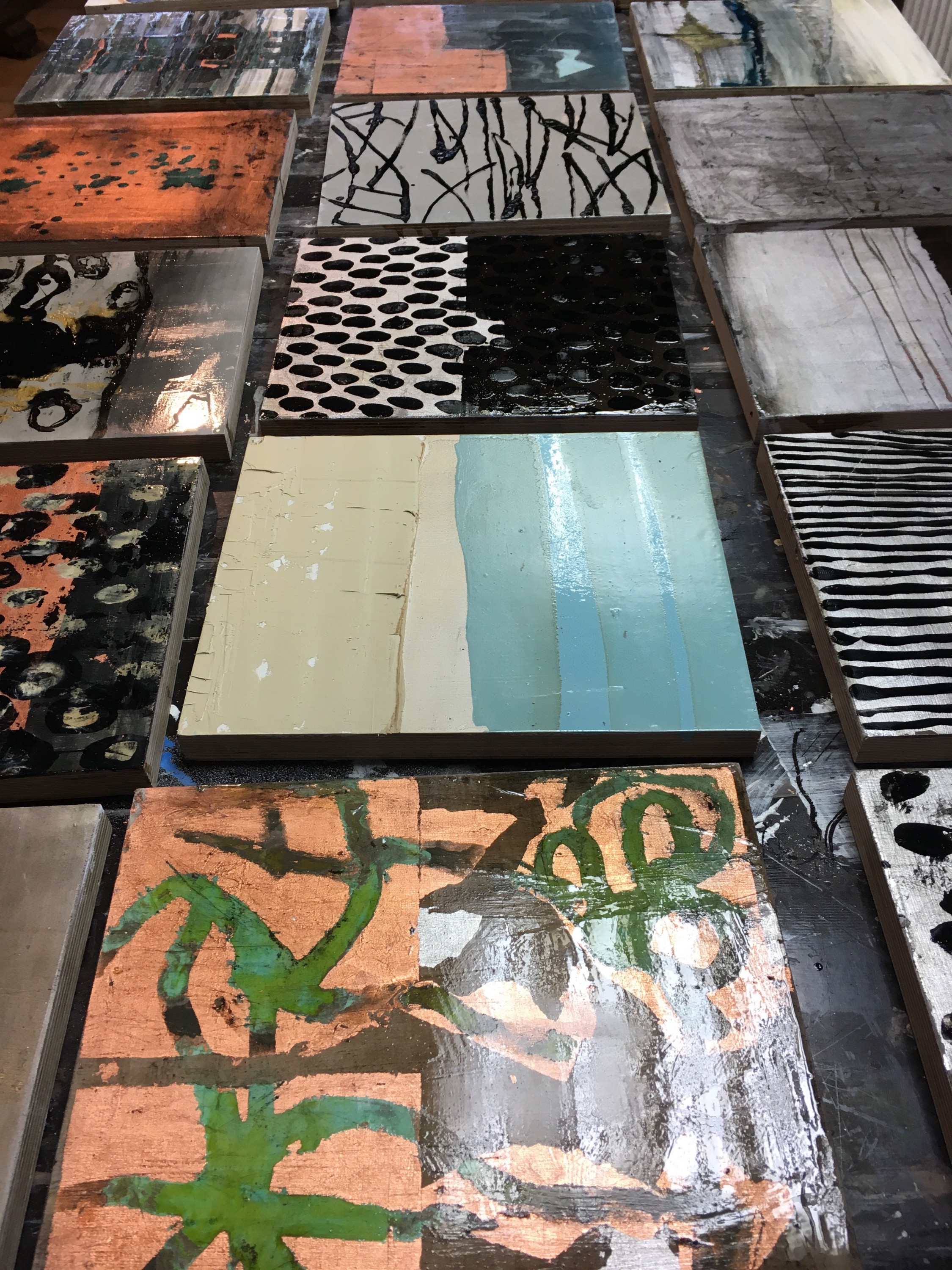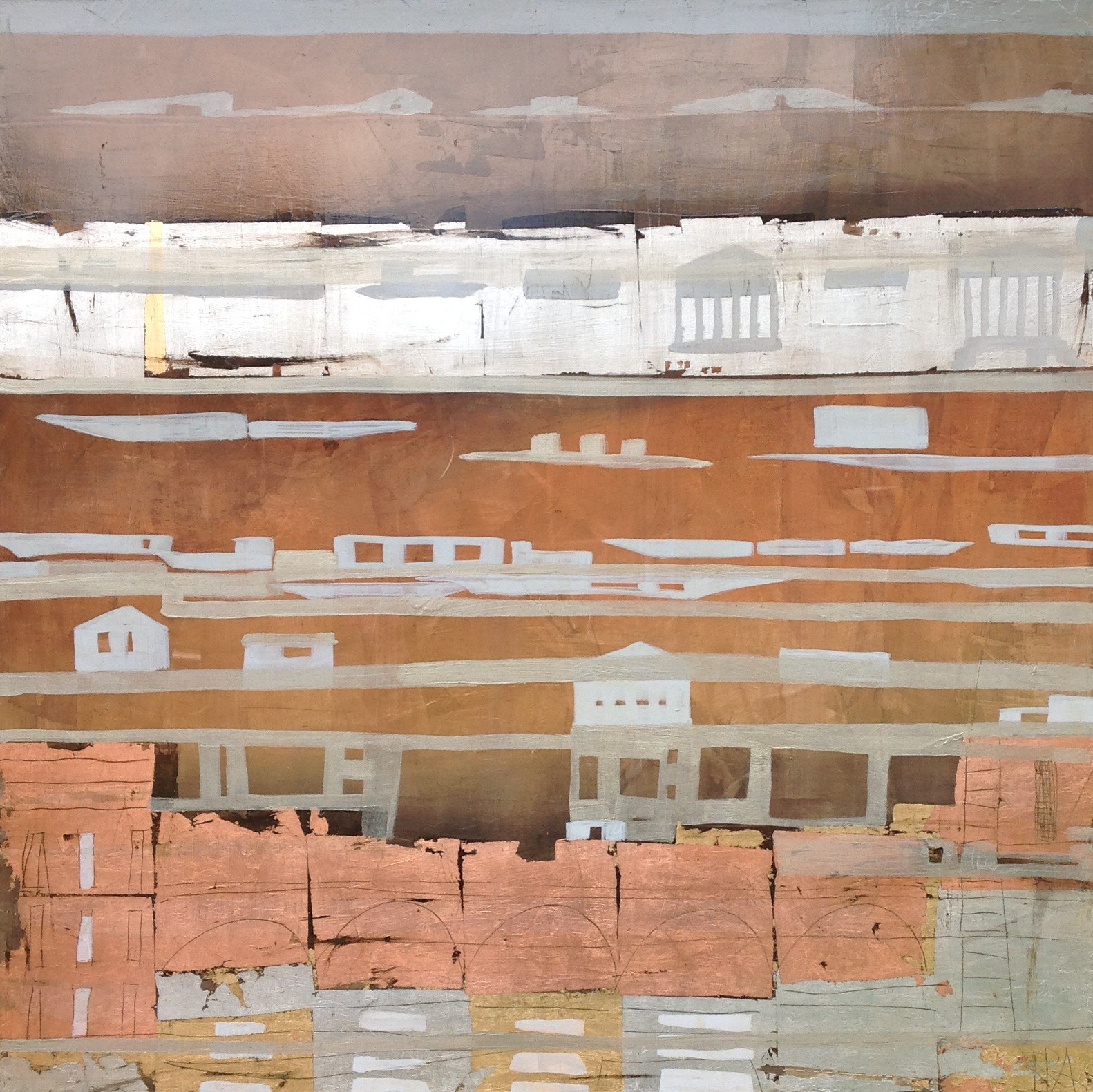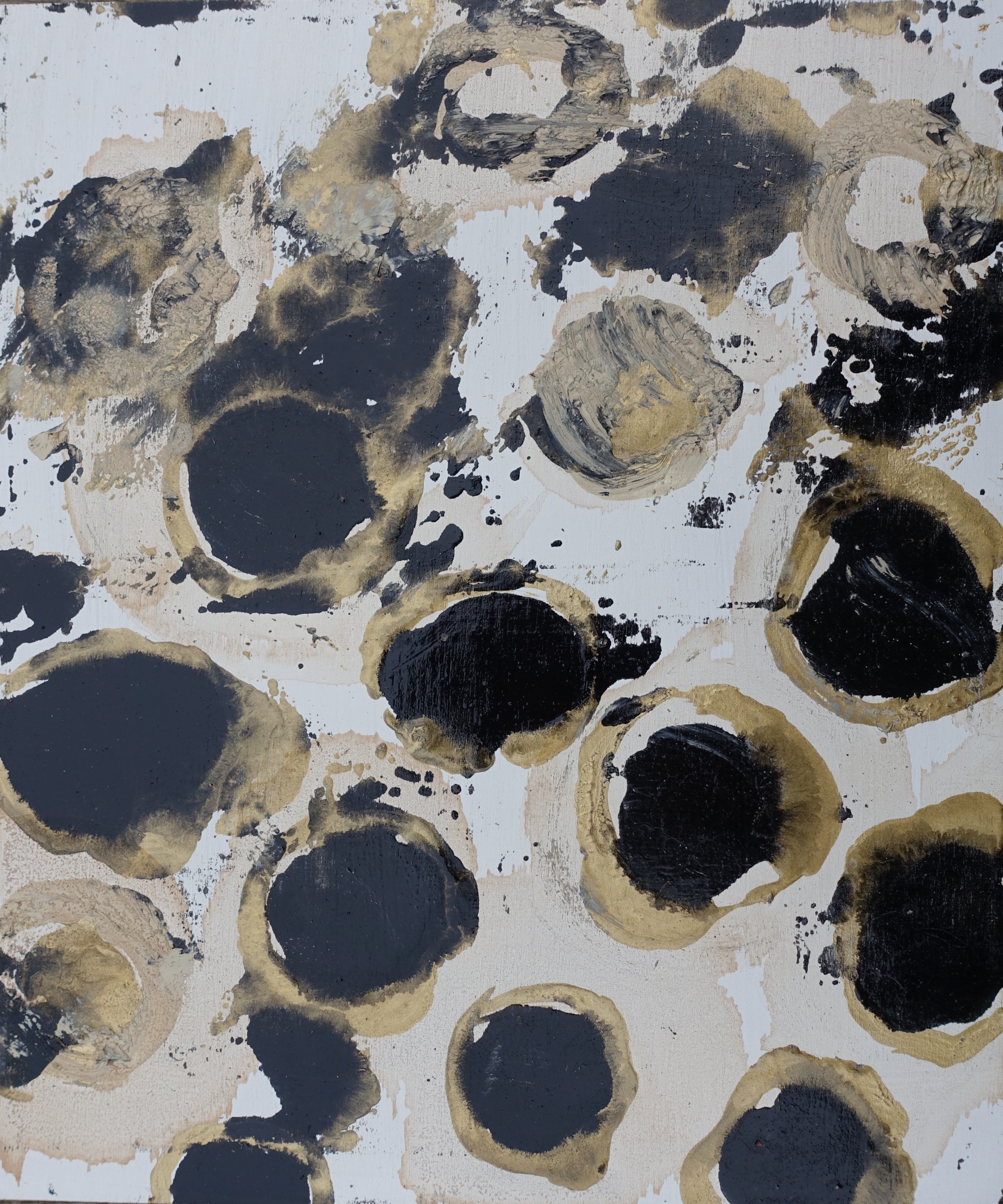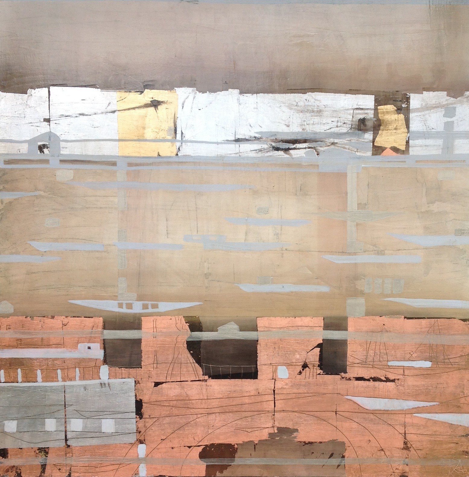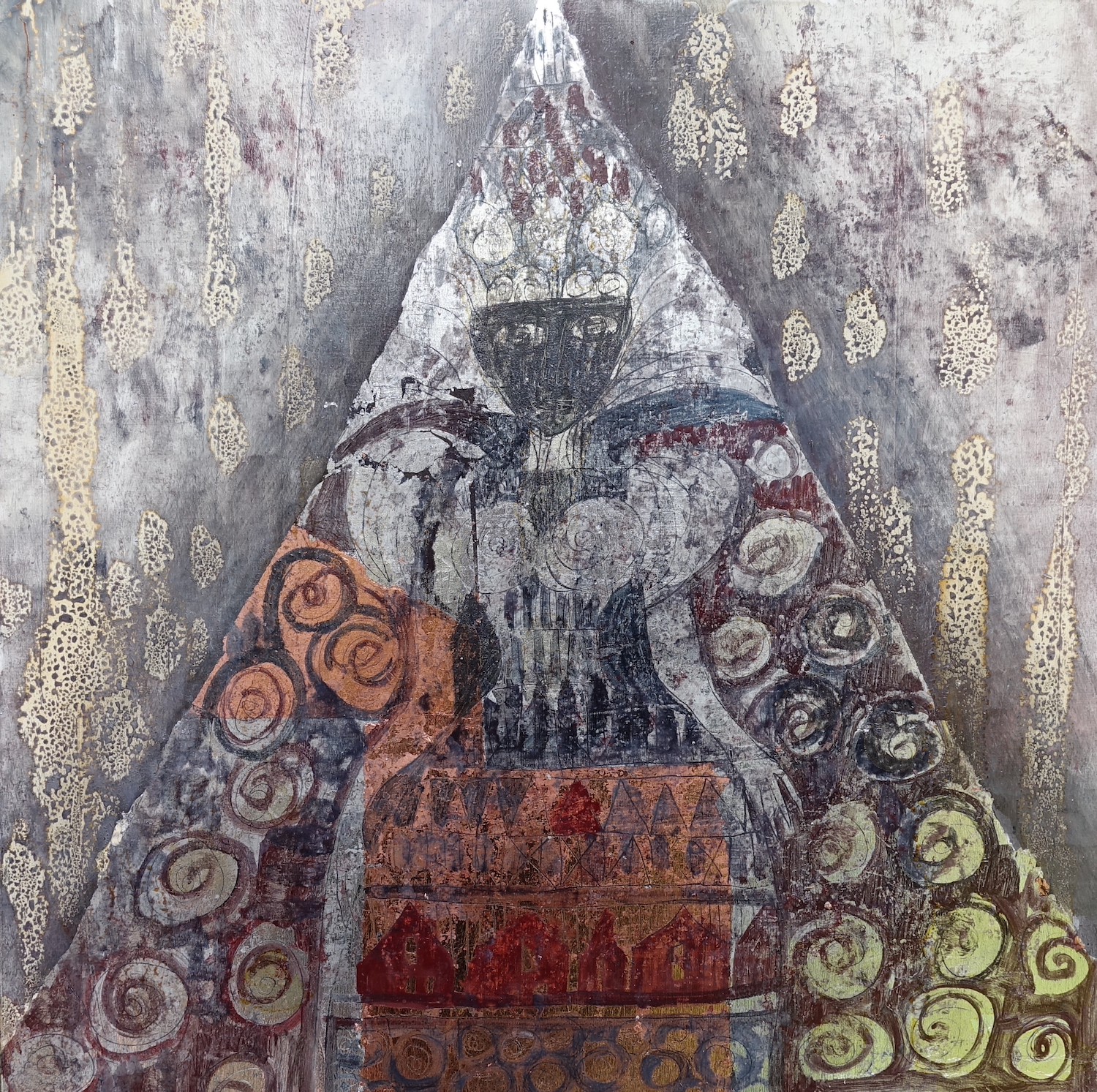 100x100cm, Öl/Lack/Schlagmetall-MT auf Holz