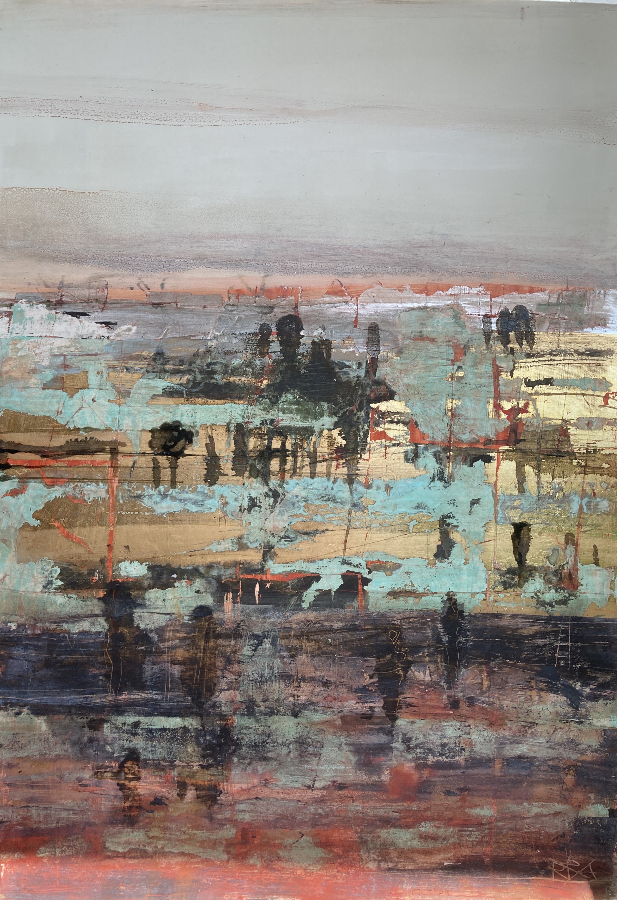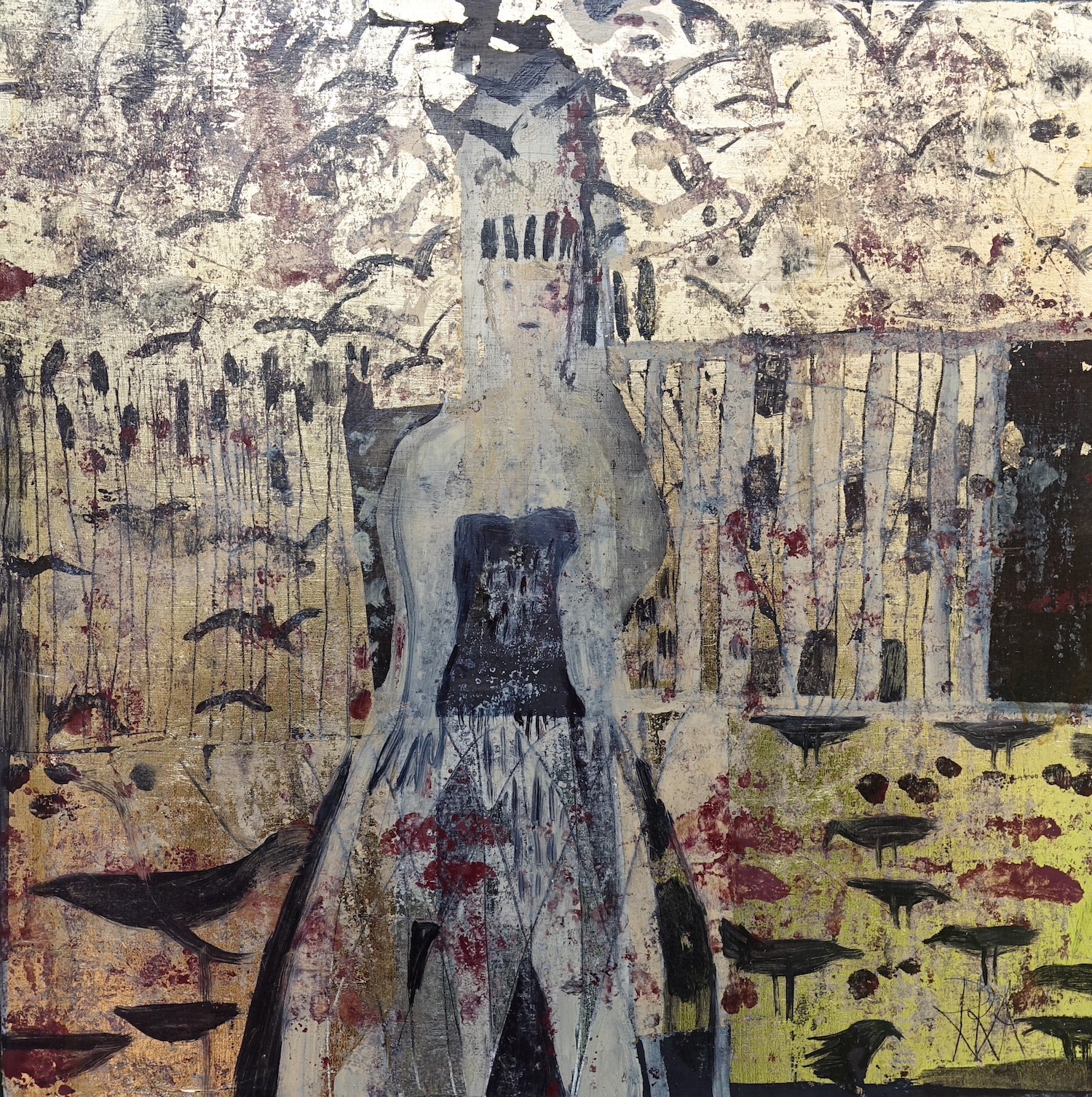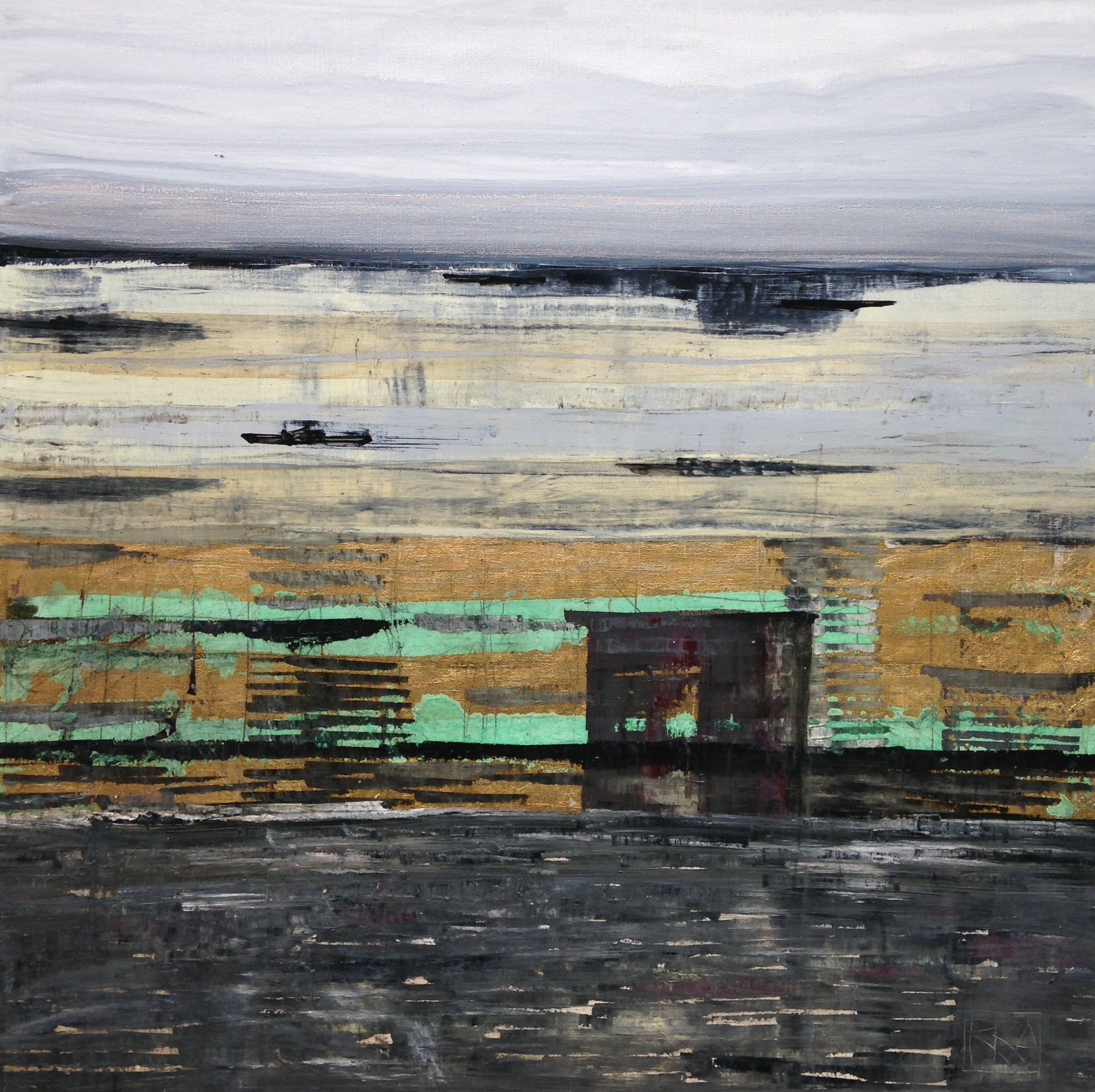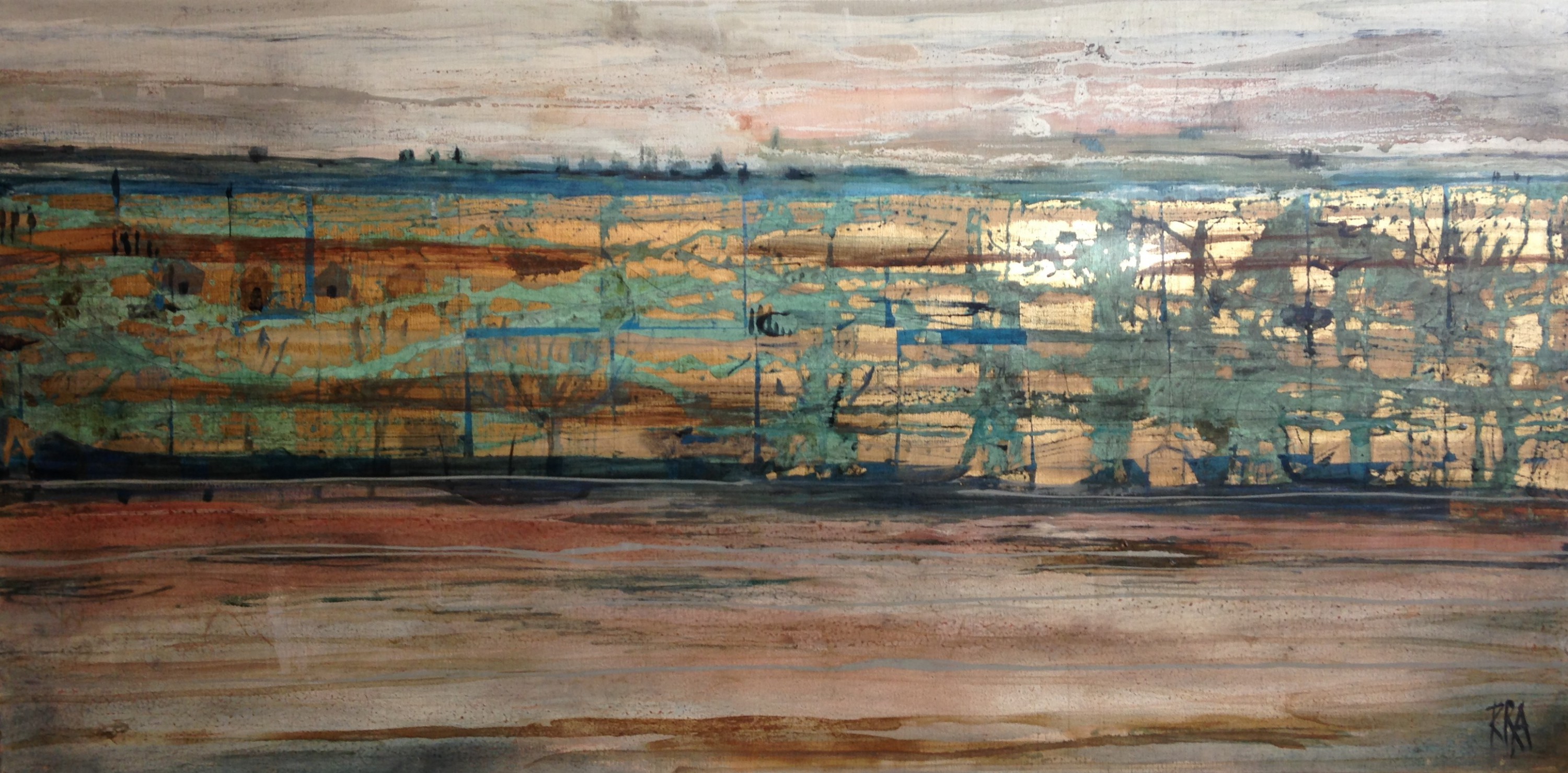 120x150 cm, Öl/Lack/Schlagmetall-MT auf Leinwand